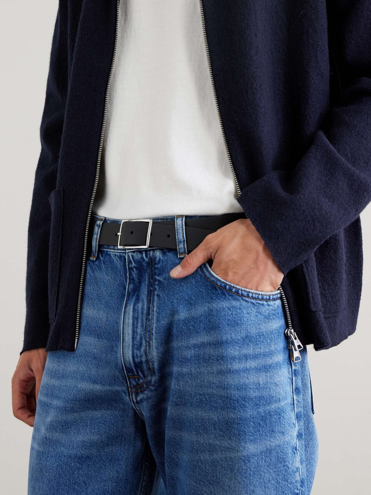 Anderson’s belt is made from full-grain leather in a narrow 3cm width. It fastens neatly with a squared-off silver-tone buckle. Small to size. Lower Impact Materials. This product is made using at least 50% lower-impact materials or ingredients.
