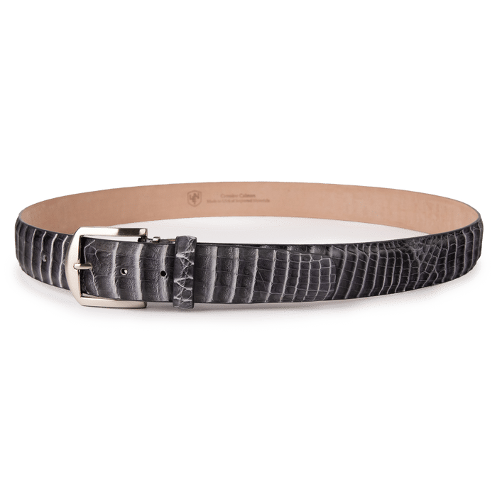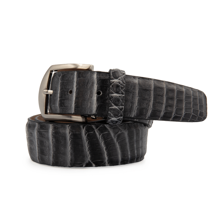Little needs to be said with leather as beautiful as this 40-millimeter Caiman Crocodile. With the texture and unique pattern being the focal point, we chose not to stitch these classic belts. Styled in charcoal with matching edge.