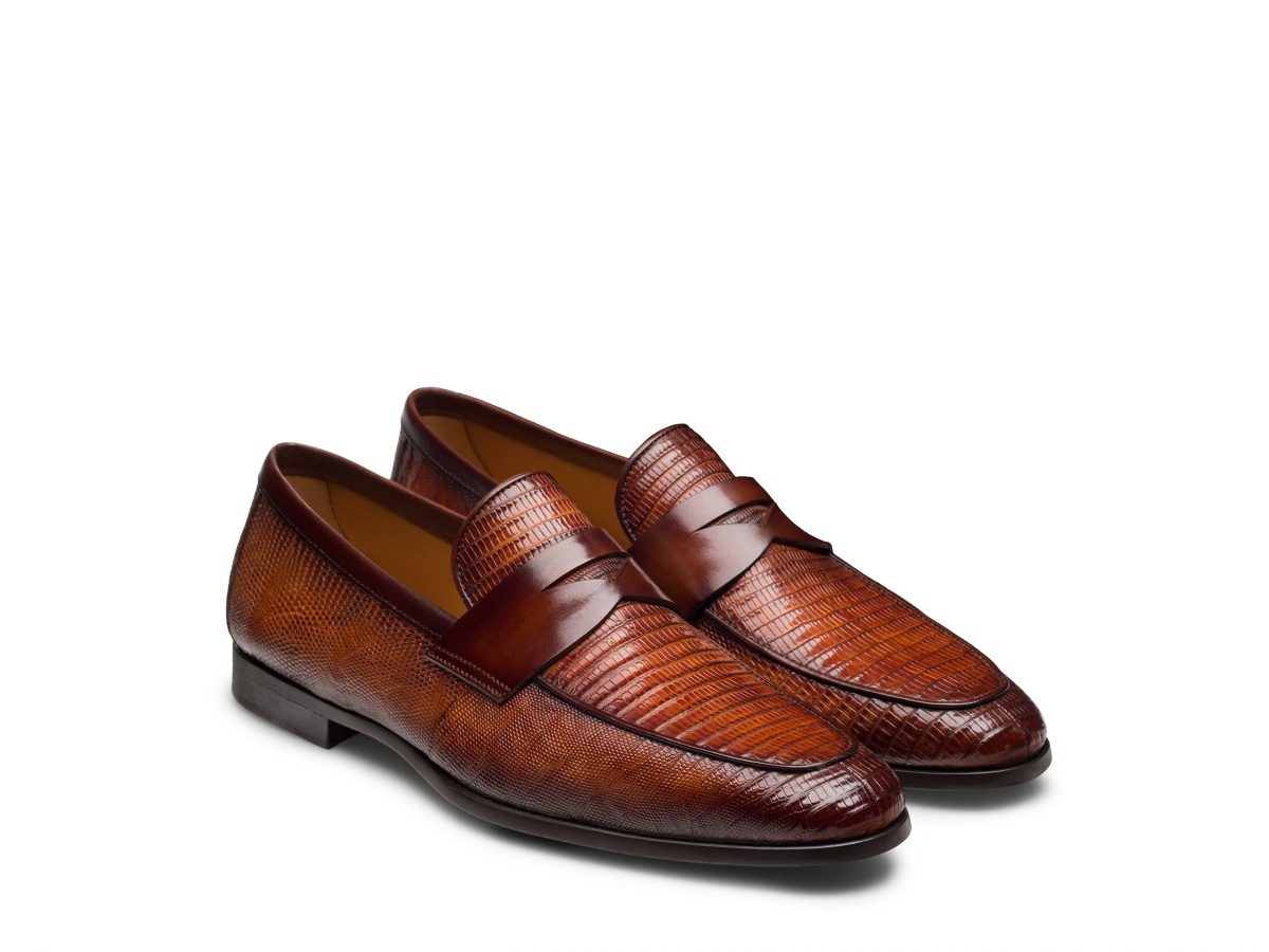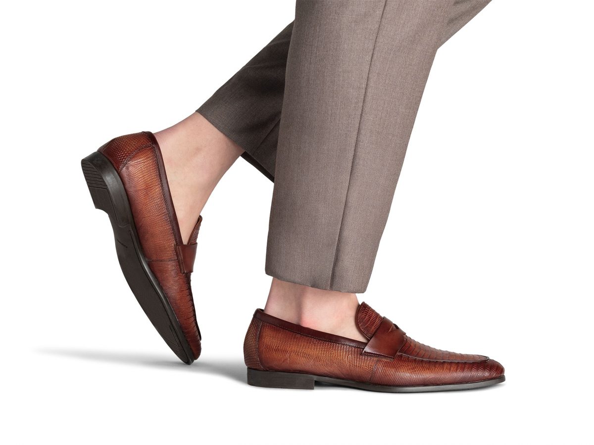 From the Línea Flex and Exotic Collection, the Vicente II is a sophisticated update to a classic, now reimagined with a flexible rubber sole for enhanced traction and everyday wearability. Handcrafted from genuine lizard leather, this exotic penny loafer showcases rich texture and timeless appeal, offering a refined look that stands out in both formal and smart-casual settings. Like the original, the Vicente II features our signature Línea Flex construction, which combines traditional Bologna craftsmanship with added flexibility for a glove-like fit and superior comfort. The new rubber sole brings a modern edge and added durability, making it even more versatile for on-the-go lifestyles. For those who value luxurious materials, artisan construction, and contemporary comfort, the Vicente II is a standout lizard leather loafer that delivers elevated style with effortless ease.