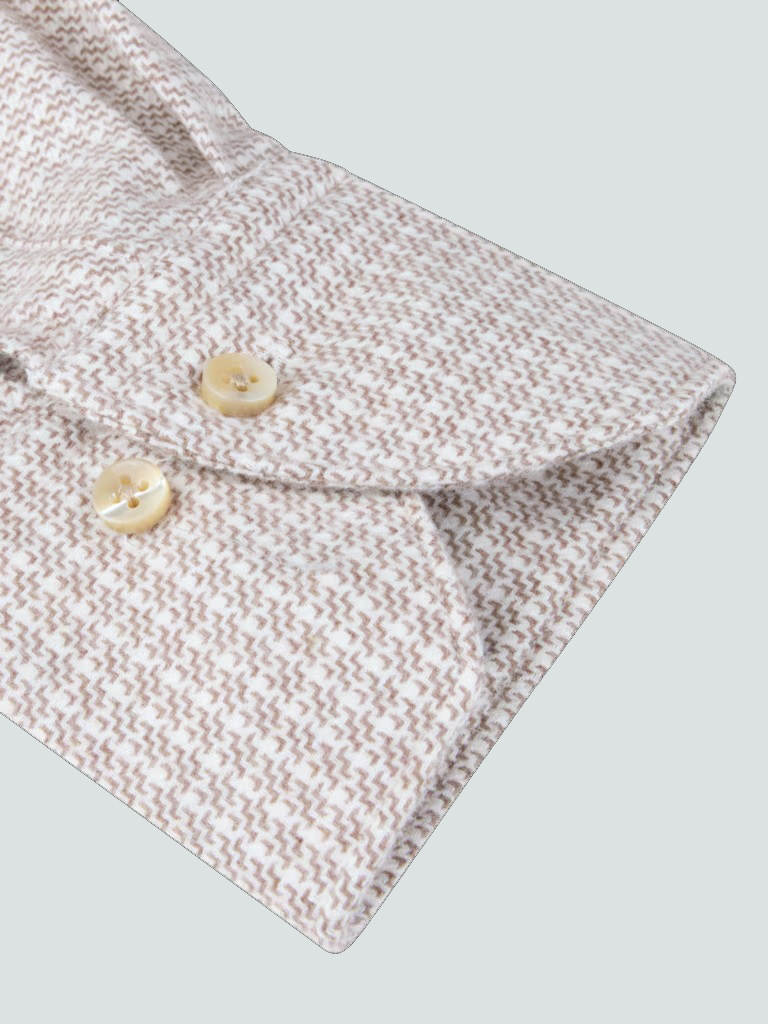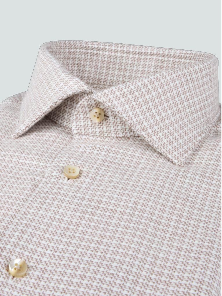 This checked flannel shirt is made of twofold cotton. The shirt is detailed with mother of pearl buttons, single cuffs and a cut away collar.
