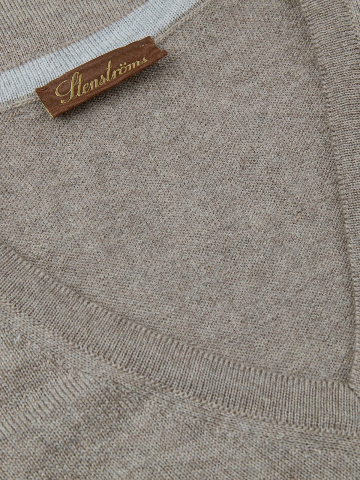 Stenströms Light brown Mélange Merino Wool V-Neck