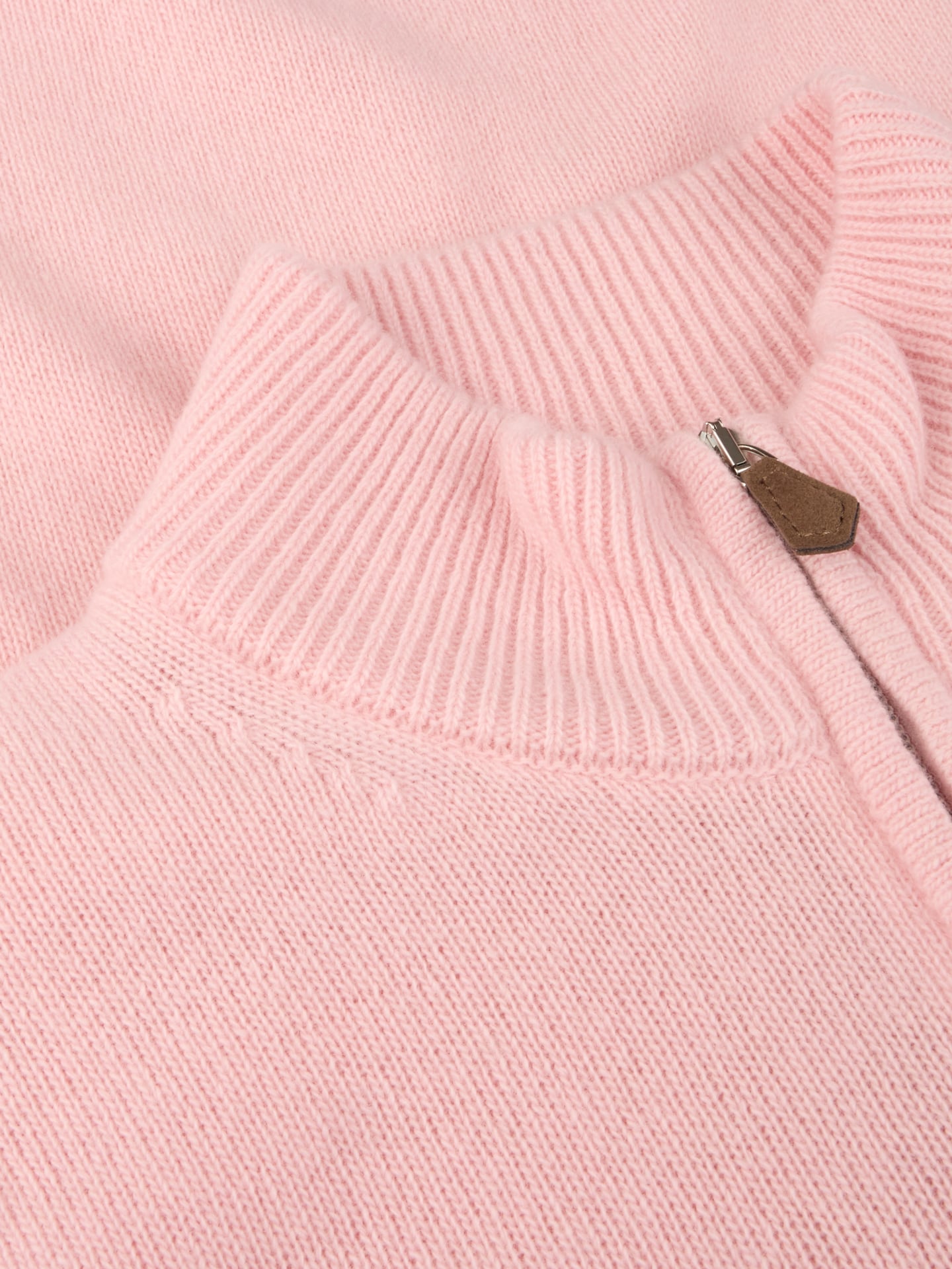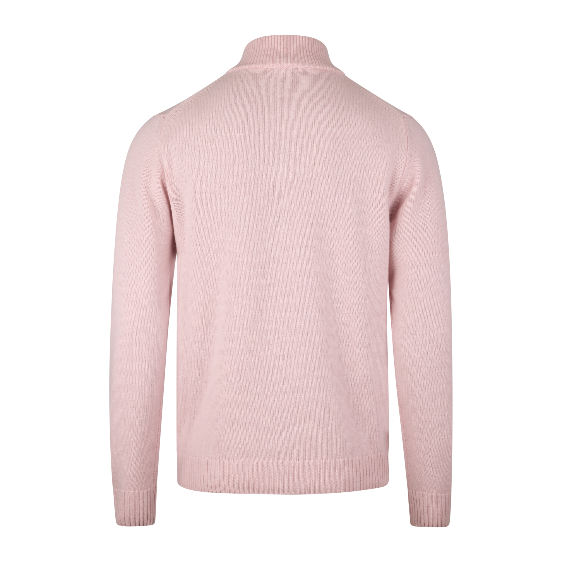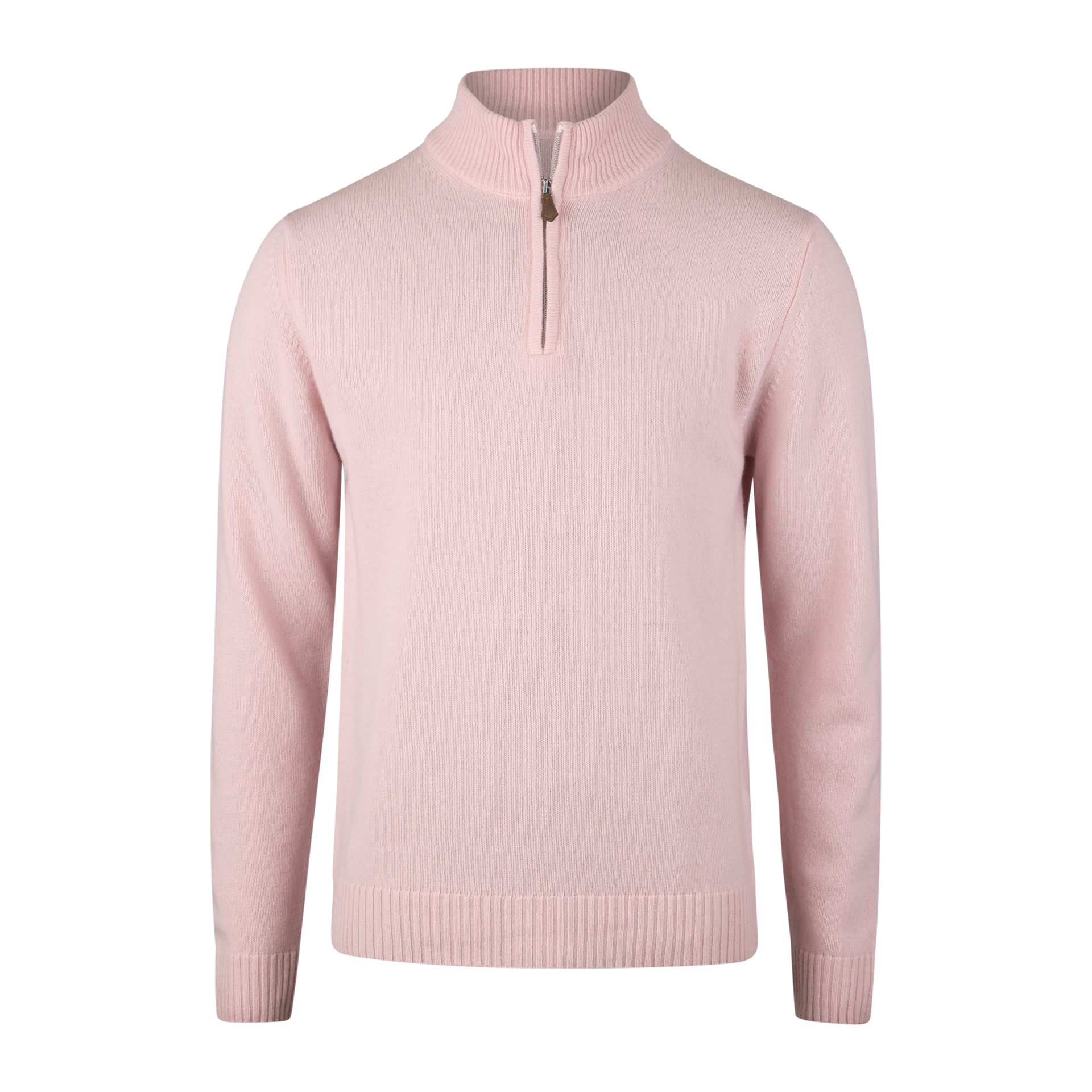 This half zip sweater is made of merino wool and is detailed with rib knitted collar, cuffs and hem.