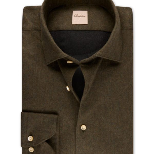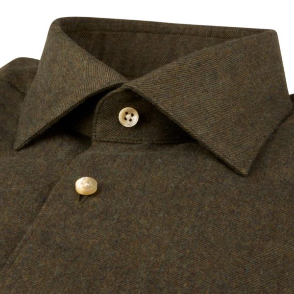 This twill shirt is made of twofold cotton. The shirt is detailed with mother of pearl buttons, single cuffs and a cut away collar.