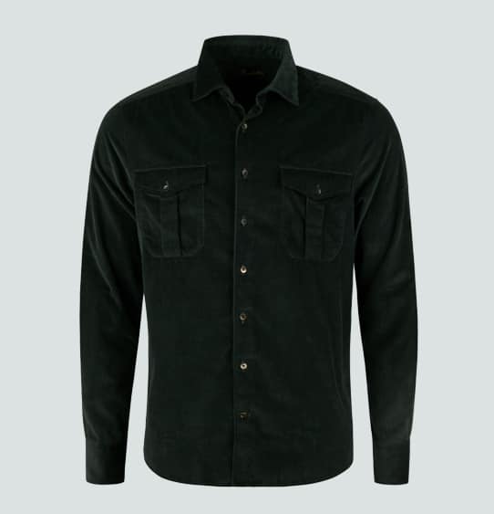 This twill shirt is made of twofold cotton. The shirt is designed with contrast inside collar and cuffs and is detailed with mother of pearl buttons, single cuffs and a cut away collar.